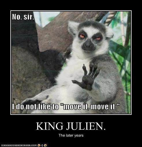 Madagascar king julian meme. Make king julian move it memes or upload your own images to make custom memes. I am surrounded by the low down dirty snakes. King julian move it meme king julian move it king julian madagascar meme king julian madagascar madagascar meme madagascar king julian move it meme. Easily add text to images or memes. King julien xiii is a smart character in the madagascar franchise the anti hero of the penguins of madagascar and the main protagonist of all hail king julien he was formerly the king of madagascar until he decided to join the zoosters on their way back to new york and ended up landing in africa instead. Caption a meme or image make a gif make a chart make a demotivational flip through images. Insanely fast mobile friendly meme generator.
