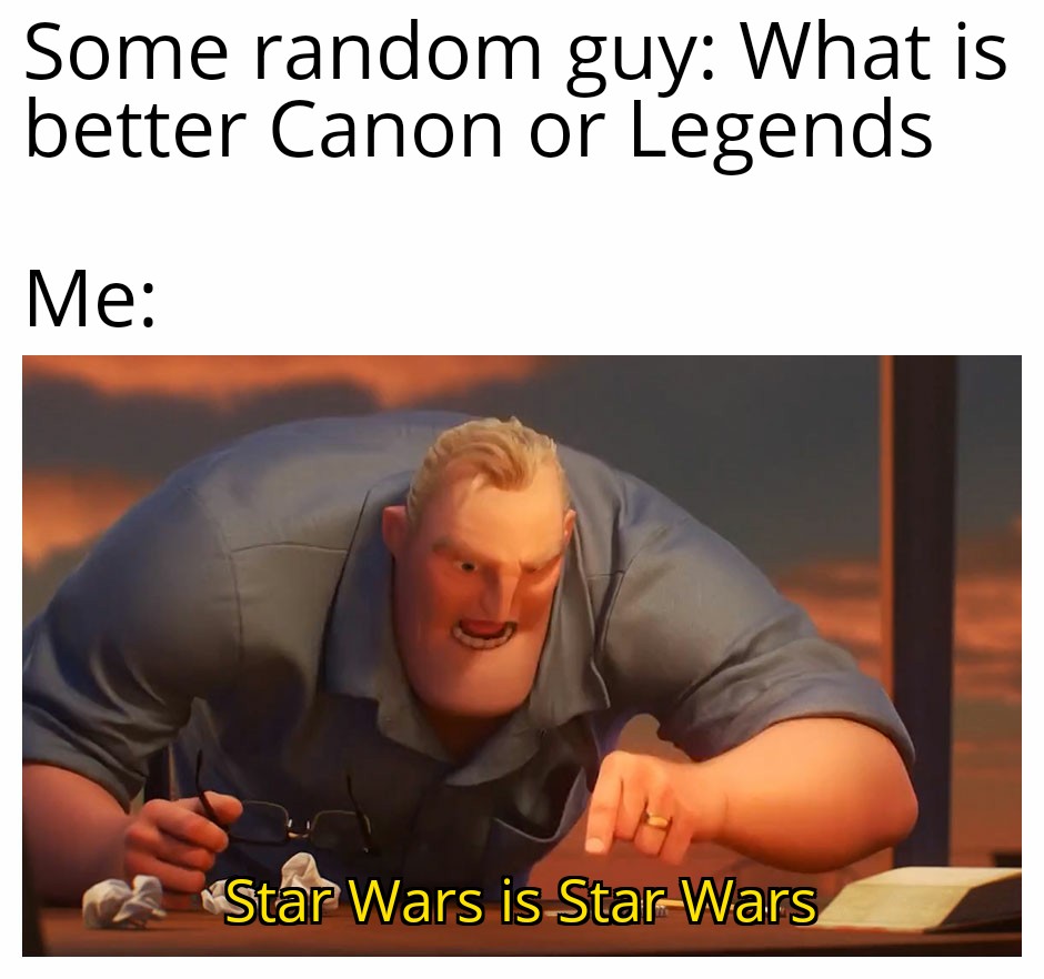 Star wars legends vs canon meme. And even if he did he would ve retconned something from legends like making mara jade asian and reeeeeeeeee. Kanon legends was ist der unterschied. However there s parts that we want again. Welcome to the star wars expanded universe subreddit. After george lucas concluded his original trilogy with return of the jedi star wars fans didn t know when they. The legends continuity just seemed like it was being pulled in a million different directions with seemingly very little communication between. Doch auch um ein wenig der nostalgie zu frönen die mittlerweile unter legends firmierenden reviews die übrigens nun alle gut sichtbar als solche markiert worden sind um missverständnissen vorzubeugen die hier in den letzten jahren erschienen sind sollen natürlich nicht gänzlich unter den tisch fallen wenngleich ich davor zurückgeschreckt habe die nicht.